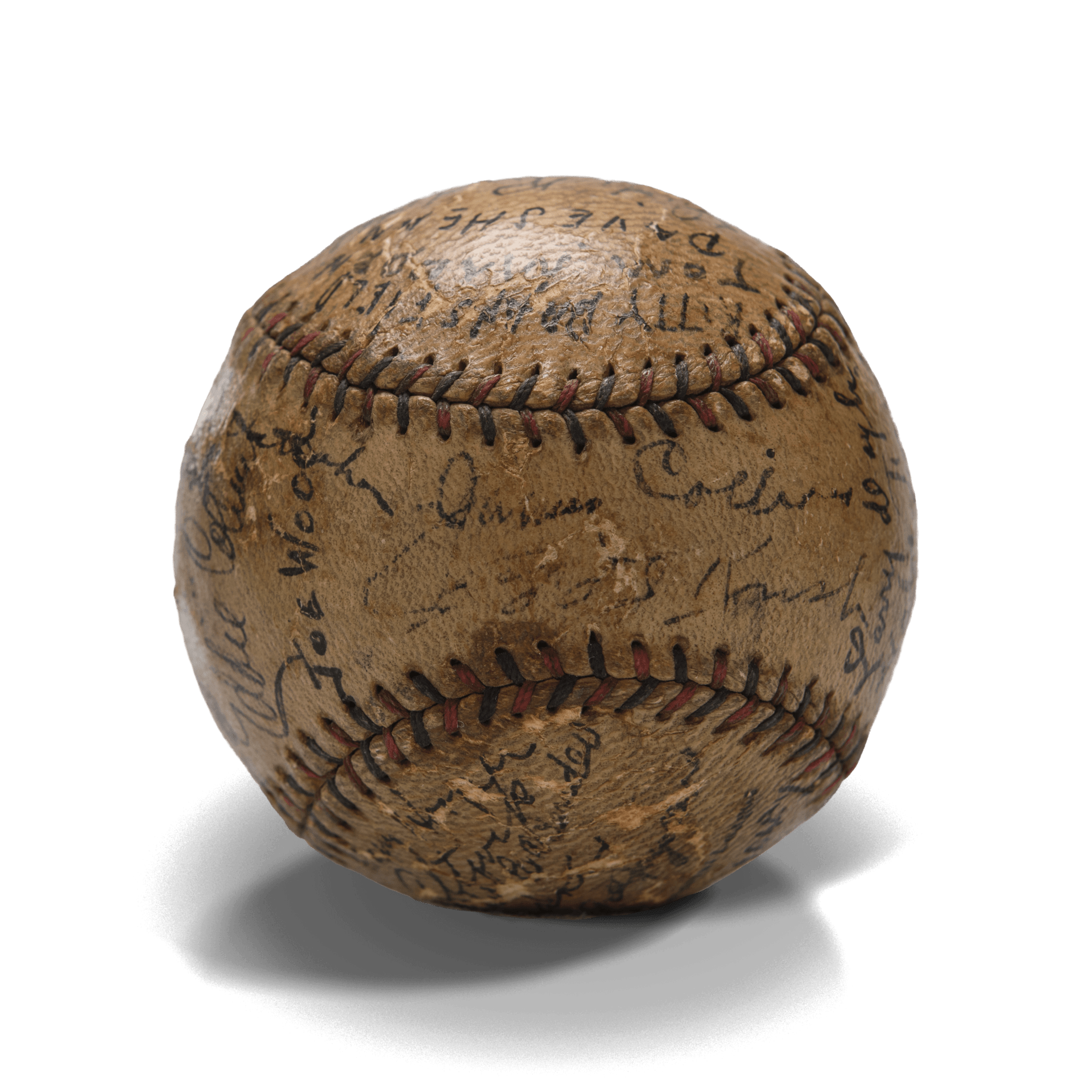 Sometimes the best things happen when least expected. Such was the case in 2017, when author Richard A. Johnson, curator of the Sports Museum in Boston, received a phone call from fundraising executive Brad Keltner proposing an exhibition of a remarkable and historical collection of baseball memorabilia. Keltner and his partner David Levanson have compiled an unprecedented collection of autographed baseballs from every team in Boston Red Sox history dating back to the club’s founding in 1901. Starting out as rival bidders at auctions competing for the desirable treasures they both sought, over a period of years Keltner and Levanson decided to collaborate, and have amassed the most historically significant and complete collection of its kind.