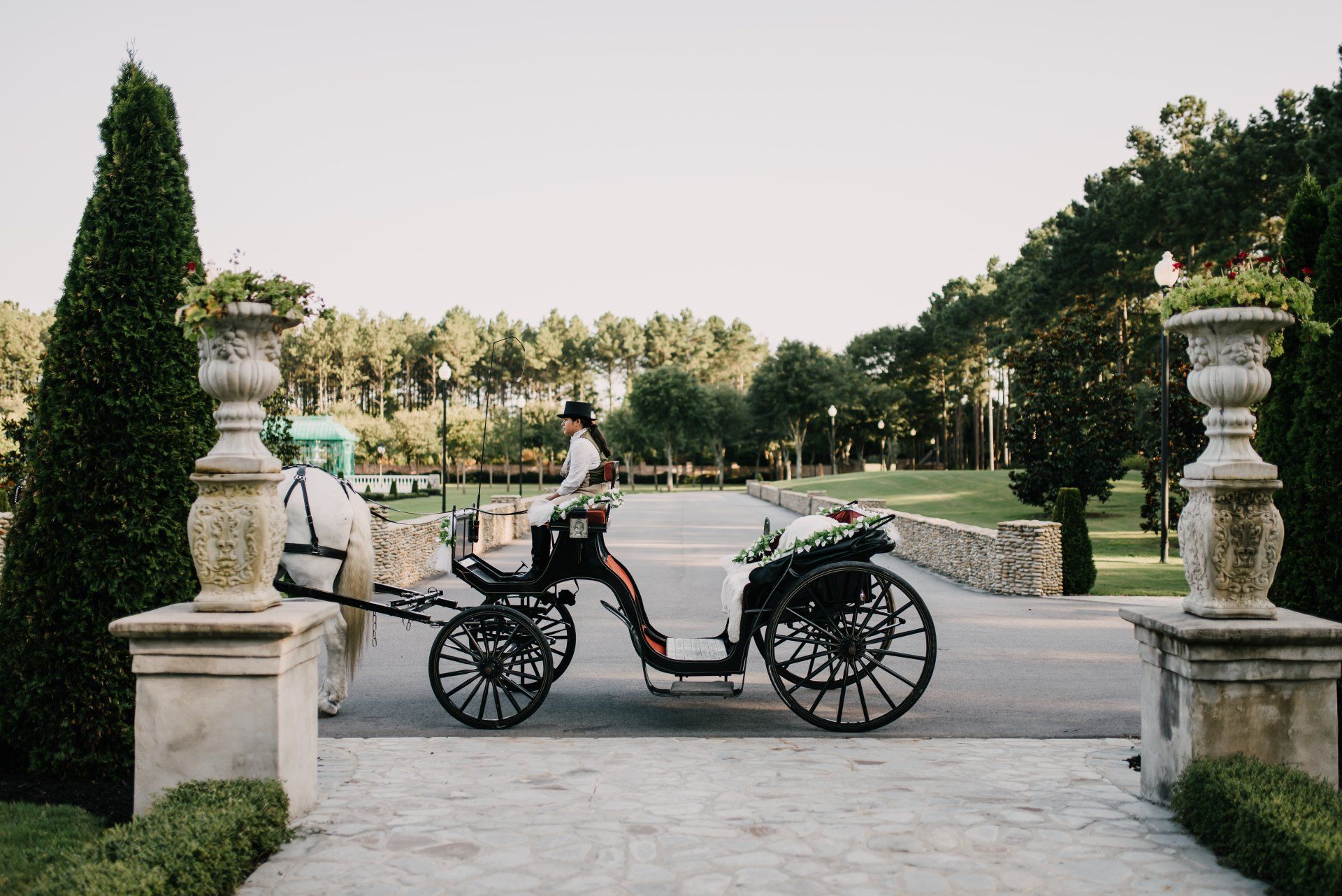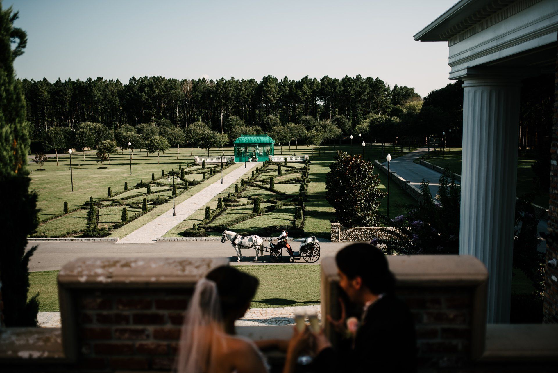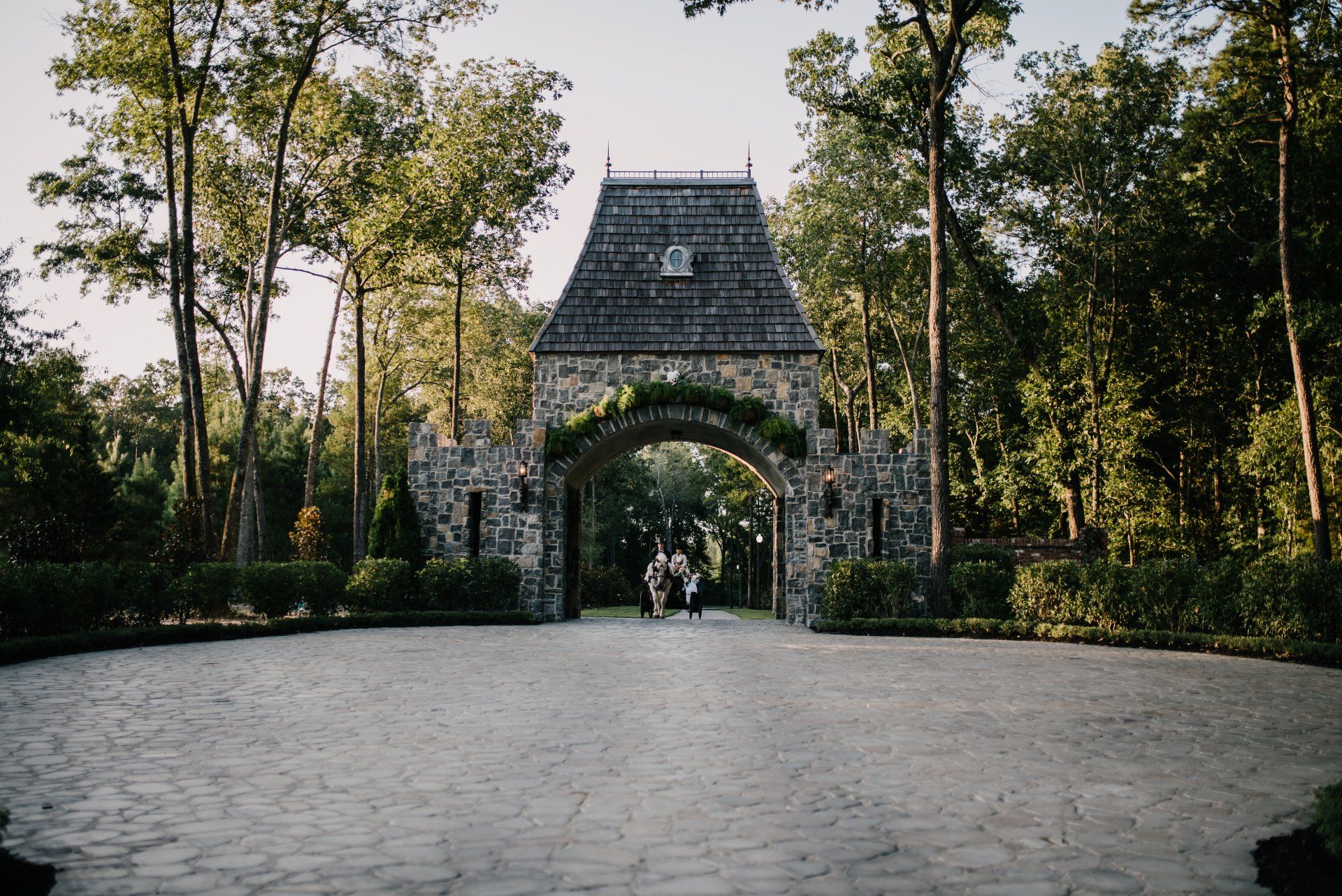 ThinkBIG has be on the design team of Tishaminga before the first brick was laid. Tishaminga is a majestic private-residence in middle South Carolina. Turning onto the stone-paved drive, across the bridge and then, through the stone gatehouse, under the canopy of trees and finally to the mansion grounds, there is a sense of old Europe at this venue. The Tishaminga mansion and library overlooks the Jardin a'la Francaise and ornate green iron Conservatory and water fountain. Flanking the mansion, Vallencourt Gardens arena is encompassed with espalier trees, a Belgium fence, topiary plantings and a towering 30 foot tall "Tower of Flowers". The stone Tower of Ian pond side and Noah's Bridge, which reminisces of the famous St. Andrews bridge are an open canvas for a massive tent set-up. Located in this nations original equestrian area of the USA, Tishaminga is a well-appointed, luxury residence touting incredible architecture and beautiful gardens.